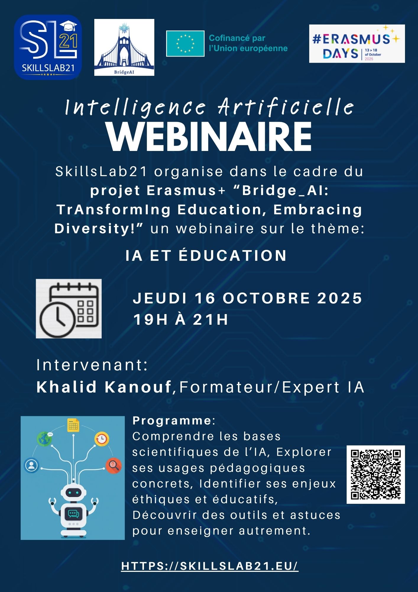 SkillsLab21 organise dans le cadre du projet Bridge_AI un webinaire sur le thème: IA et Education